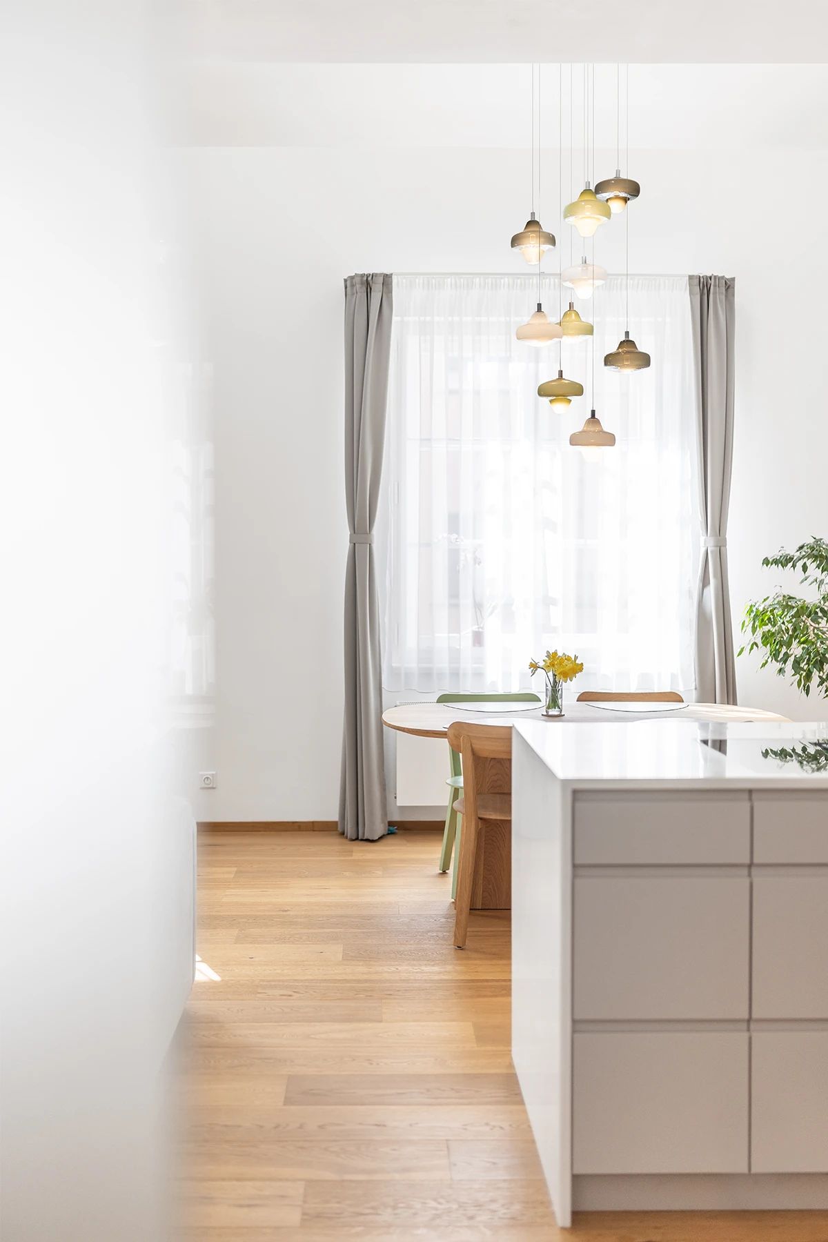 Stejně pečlivě jsme přistupovali i k výběru typových prvků. Svítidlo od Brokisu a jídelní stůl od Javoriny – obojí z pera Lucie Koldové, jedné z nejvýraznějších českých designérek.